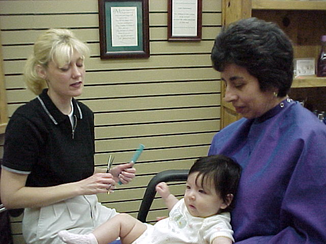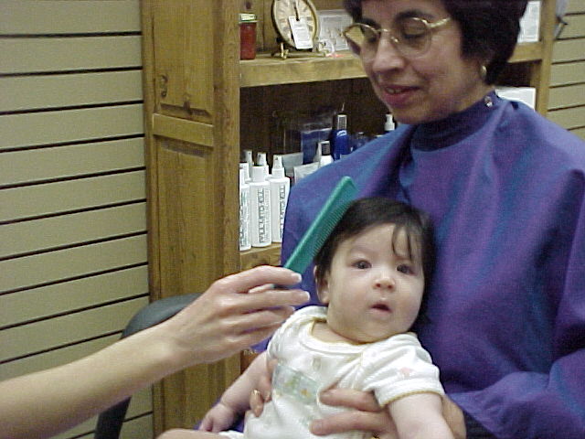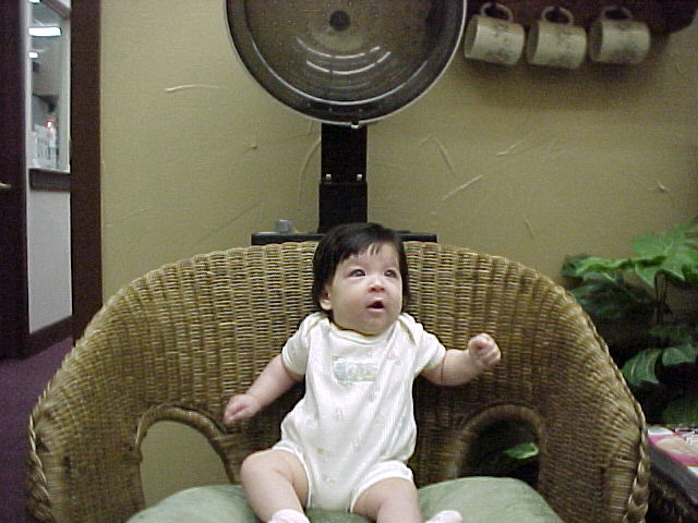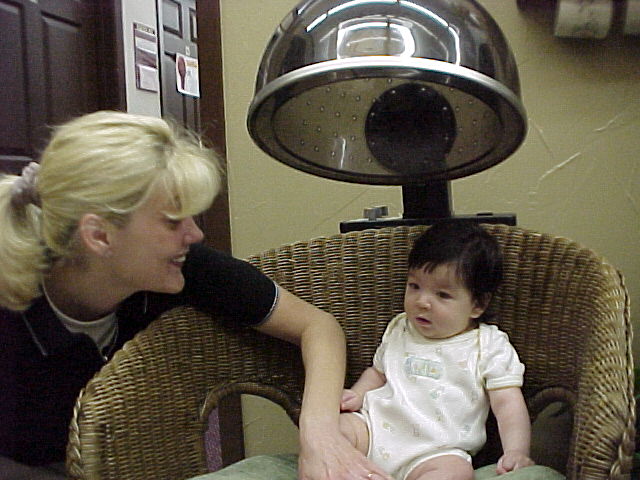 I had a good time at the beauty salon. Grandma held me while Mrs. Beth did the hard work. I was happy when it was all over. Then mom let me sit in a big girl chair under the dryer. I decided that Mrs. Beth was really nice by the time we were all done! She even wrapped some of my hair in foil for mom to keep in my baby book.